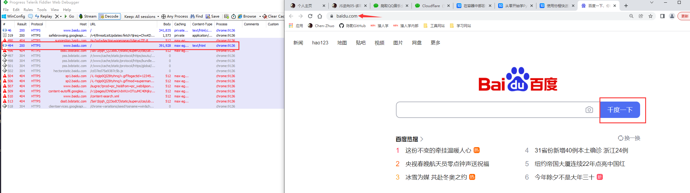现在我们再来访问百度的首页,就会发现搜索按钮中的“百度一下”已经被替换为“千度一下”了,这样我们就可以在本地任意位置打断点或调试: