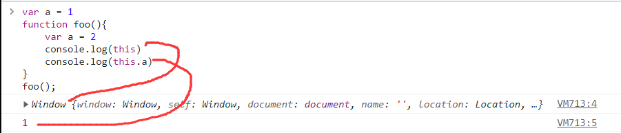 这里解释一下图中,在非严格模式下 this 是指向全局对象window,所以 foo 函数中 this.a 输出了最上面定义的 var a = 10 的值,在严格模式下 this 是指向undefined,所以 foo 函数中 this.a 输出了undefined;