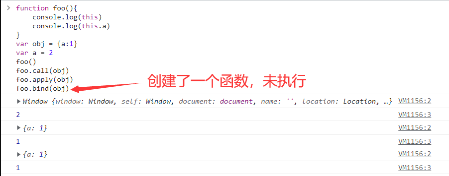 下图中第一个数字2是 foo() 输出的,**虽然 foo() 函数也返回了一个函数,但是并没有调用它,只有写成 foo()() 才算是调用匿名函数;**第二个数字 1 是 foo.call(obj) 输出的,由于 .call() 是紧跟 foo 的,所以改变的是 foo() 内this的指向,并且 .call() 是会使函数立即执行,因此打印出 1,同样他也没有调用返回函数;第三个数字 2 是 foo().call(obj) 先执行 foo() 时打印出来的,此时 foo() 内的this还是指向 window,在执行完 foo() 之后,返回一个匿名函数,并且后面使用了 .call(obj) 来改变这个匿名函数的 this 指向并调用了它,所以输出了 1。